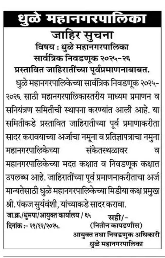 1जाहीर सूचना - प्रस्तावित जाहिरातींच्या पूर्वप्रमाणनाबाबत.View